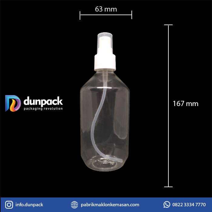 PT Dunpack Mitra Industri menjual Botol Kaizo Spray 300 Ml, 30 Gr dengan ukuran tinggi 167 mm, berat 30 Gr, diameter 63 mm, dan volume 300 ml, Botol Kaizo Spray 300 Ml, 30 Gr ini dibuat dari bahan Pet berkualitas dan terjamin mutunya